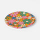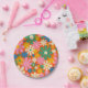 Retro Flowers Multi-Colour 60s 70s Floral Pattern Paper Plate