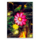 A glowing modern floral abstract with pink and yellow retro flowers and starry neon lights.