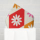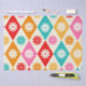 This is cute retro flowers pattern placed on colourful geometric harlequin diamonds in orange, pink, red, teal, and tangerine.