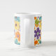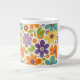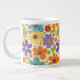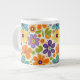 Retro Flowers Orange Lilac and Green Large Coffee Mug