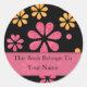 Retro Flowers Personalised Bookplates : Pink Classic Round Sticker