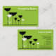 A business card template design with an abstract mid-century style flowers motif. Company name and business type etc on the front with name and other details on the reverse side with the same flowers motif.