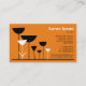 A business card template design with an abstract mid-century style flowers motif. Company name and business type etc on the front with name and other details on the reverse side with the same flowers motif.