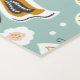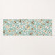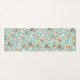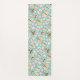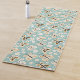 Pretty yoga mat features folk art retro style butterflies and little white flowers on light blue background.