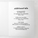 Modern style trifold wedding invitations featuring a simple and minimal layout with your names in a groovy retro font. Below are your event details in a sans serif font along with your QR code (optional) for guests to scan and easily RSVP online. The left panel has your schedule of events, the right panel has your additional details and the back has your favourite photo. Colour scheme of the invitation and outside cover is black with white lettering and the remaining panels on the inside are black and white. The QR code may be removed and the fonts / colours may be changed in the design editing tool.
