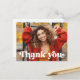 Thank you postcard with the text "thank you" in a retro style font as a white overlay over your custom photo on the front. On the back is the text "graduate" in a retro style font and the year with a custom message below. You can change colours, move and resize elements with the design tool.