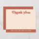 Terracotta brown or any colour, personalised, blank notecard with the text "thank you" in a retro style font and your custom name or other text in white over a terracotta border at the lower edge. You can change all colours, move and resize elements with the design tool.