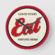 Trendy chic retro kitchen wall clock in a food themed throw back design that has the phrase Good Food Served Here styled in a bold yet styled look. Designed as a kitchen wall decor time piece that adds a touch of flair to your home decor. Created for the home or add this to your restaurant wall to add some atmosphere.