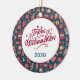 This fabulous Christmas folk art blue round ceramic ornament with a pattern of santas, gingerbread men, Christmas trees, ornaments, angels and presents that says Merry Christmas in German "Frohe Weihnacten" and has the year would look awesome on your Christmas tree. It's so festive and will go with any Christmas decor - it's rustic yet retro and modern yet traditional! Get some as gifts for loved ones...they'll love it!