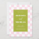 A retro pink and green checkerboard save the date with fun bold type and a playful layout, perfect for couples who love a colorful, modern twist on a classic wedding save the date. The bright checkered pattern and groovy typography create a cool, nostalgic vibe for spring and summer weddings. Personalize the names, date, and details for a unique, eye-catching announcement.