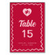 Retro Fun Wavy Frame Red Pink Cupid Wedding Table Number