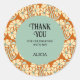 This retro groovy birthday thank you sticker features an abstract daisy flower in a groovy funky trippy style seamless pattern on a brown background.