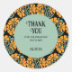 This retro groovy birthday thank you sticker features an abstract daisy flower in a groovy funky trippy style seamless pattern on a black background.