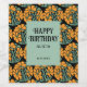 This retro groovy birthday wine label features an abstract daisy flower in a groovy funky trippy style seamless pattern on a black background.