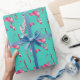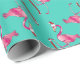 This pink Santa Flamingo is holing his stocking and boy is it Long - funny retro Flamingo Christmas wrapping paper.