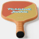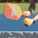 Retro inspired sunburst design in bright and playful vintage colours with the phrase "pickleball junkie" that can be personalised with your name.