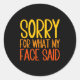 Retro Funny Quote Sorry For What My Face Said Classic Round Sticker