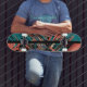 Step into a world where Victorian steampunk mechanics collide with cybernetic future technology. This skateboard deck design is a bold fusion of industrial gears, biomechanical anatomy, robotic enhancements, and futuristic sci-fi aesthetics, created for skaters, collectors, and street art lovers who want something truly unique.