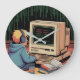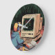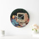 Retro Gamer Kid on Vintage Computer Pixel Art Large Clock