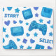 Featuring a bold blue pattern of controllers, pixel invaders, cartridges, and the classic “START” and “SELECT” text, this mouse pad combines style with function. Perfect for gamers, streamers, and retro arcade fans, it adds a fun touch to your desk while providing a smooth surface for precise mouse control. A must-have accessory for gaming or work!
