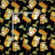 Retro gaming machines in yellow and orange colour pallete. Pinball, arcade machines and joystick. Seamless pattern. Custom background colour.