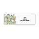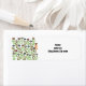 These return address labels have a mid-century modern design of retro flowers in a retro colour palette or red, orange, yellow, green, and blue.
