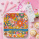 Retro Garden Colourful 60s 70s Floral Pattern Paper Plate