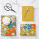 Retro Garden Floral 60s 70s Pattern Wrapping Paper Sheet