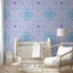 Retro garden florals in blue and violet wallpaper