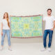 Retro garden florals in green and yellow throw blanket