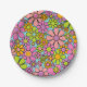 Retro Garden Flowers 60s Colourful Floral Pattern Paper Plate