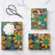 Retro Garden Gingham Flower 60s 70s Floral Pattern Wrapping Paper Sheet