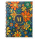 Retro Garden Groovy Floral 60s 70s Pattern Initial Notebook