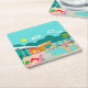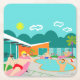 This Retro Gay Pool Party Hard Paper Coaster features four hunky beefcakes having a gay old time as they beat the Palm Springs heat by lounging around the turquoise blue water of their atomic boomerang shaped swimming pool. The mid century modern architecture on the fabulous, orange stone house is clearly prime real estate, given the view of the mountains in the background. A yellow starburst sun shines brightly in the turquoise sky so you are able to see every charming detail--from the kitschy, pink flamingos to the 1950’s striped, breezy blocks fence. And of course what Palm Springs House would be complete without a palm tree?