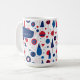This Memphis-inspired geometric abstract design brings a modern twist to mid-century style with it's playful shapes and bold palette of red, white and blue on a crisp white background. The dynamic composition captures the essence of mid-century modern patterns. This versatile coffee mug design can be easily personalised to suit your unique style using the supplied template. Try out Zazzle's handy transfer option or search ID1067 to see additional patterns and products in this design set. Note: pattern adapted from generative content.