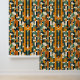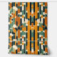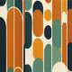 A vibrant retro-inspired geometric design featuring bold orange, green, and black shapes. The abstract arrangement of rounded lines and circles creates a dynamic, vintage aesthetic.