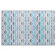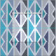 A mid century modern inspired abstract art design with atomic age style geometric vertical triangles in different sizes. In dark grey, light grey, turquoise, teal, and various shades of blue.