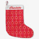 Retro Geometric Christmas Red Pattern Personalised Small Christmas Stocking