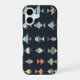 Stylized fish in geometric shapes within a vintage ocean setting.