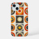 This artwork features a vibrant and bold pattern of concentric circles and squares arranged in a structured grid format. The design showcases a retro-inspired colour palette of warm oranges, deep browns, yellows, and creams, creating a nostalgic yet modern feel. Each circle is perfectly centred within its square, with the repeating patterns creating a rhythmic and balanced composition. The use of strong, contrasting colours and geometric shapes gives the piece a dynamic and visually engaging appearance, reminiscent of mid-century modern design.