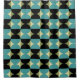 Retro Mid Century Geometric Half Square and Circle Pattern Black Beige Turquoise and Olive Green.