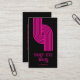 Bold geometric mod magenta stripes retro style business cards with retro flourished typography on black. A 60's and 70's style vibe. Vibrant and pretty.