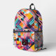 A bright geometric retro pattern on an all over print bag. Customise this design with your initials for that personal one of a kind touch.