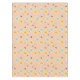 Retro geometric pattern with teal, orange, and black star-shaped diamonds on a peach background. The design conveys a playful, vintage feel.