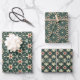 Retro Geometric Starburst Pattern in Cream, Red Wrapping Paper Sheet