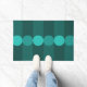 A 1950s inspired abstract art design with vertical thick lines and circles in a row. Great gift idea for anyone who loves mid century modern art. Blue-green.