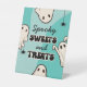 Retro Ghost Blue Halloween Birthday Party Decor Pedestal Sign