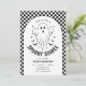 Get ready to raise some spirits! This black and white Halloween birthday invitation features a friendly retro ghost, bold typography, and a trendy checkboard background — perfect for a spooky soiree. With its modern-meets-retro style, this ghost-themed invitation is ideal for both kids’ parties and adult gatherings, whether you’re hosting a costume bash, haunted hangout, or stylish October birthday. The minimalist colour palette keeps it chic, while the playful layout brings in Halloween fun with a fresh twist. This Halloween birthday invitation is available as a digital download or printed version.