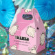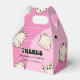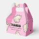 Cute kids halloween birthday party favour boxes featuring a groovy pink background, a group of retro ghosts, creepy spiders, and a modern text template that is easy to personalise.