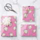 Retro Ghosts Pink Halloween Wrapping Paper Sheet